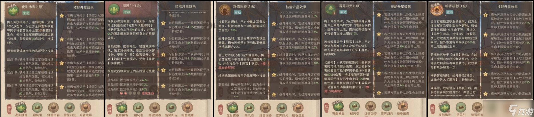解析:利用梅长苏亲和铁卫技能,提升铁卫格挡率和生命上限,双铁卫在前排抗伤,后排武者或方士主c输出,双药师辅助控场。
