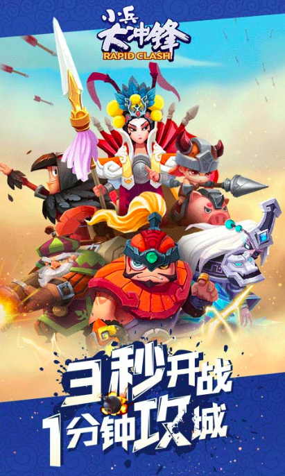 《小兵大冲锋》融合轻量化策略与即时攻防,实现3秒开局、1分钟进入核心战斗的极速节奏。游戏提供战士、法师、射手、辅助四大职业体系,支持自由编队与兵种协同。武将设计融合古典名著元素与现代视觉语言,配合22类机关陷阱与3套守城兵布阵逻辑,构建兼具深度与易上手性的城池防御体系。