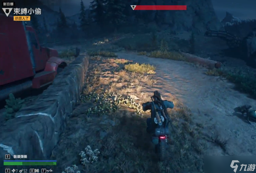 开始这个任务时,你需要骑着摩托车前往地图上标识的蓝色任务区域。到达地点后,关键步骤是下车站到蓝色光圈范围内寻找可互动的物品。特别要注意悬崖边的护栏位置,那里会出现一个放大镜的调查图标,走上去并按互动键触发剧情即可。务必确保你的机车停在旁边,而不是一直骑在车上,必须走下去才能激活任务流程。