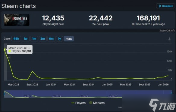 相比之下,此前《生化危机4重制版》的最高同时在线峰值为16.8万人,《生化危机8》则为10.6万人。