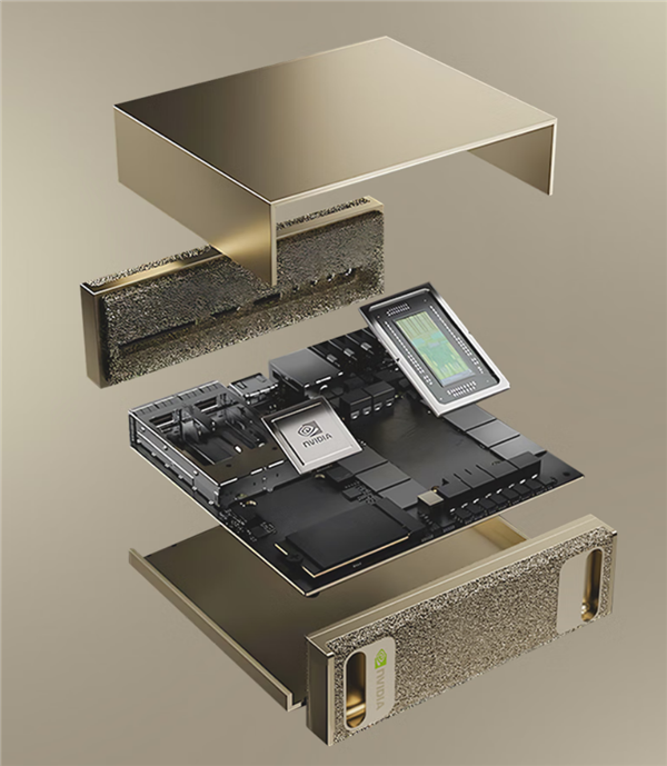 DGX Spark外观类似一台迷你机,金黄配色,被称为“小金盒”,内部采用GB10自研处理器,集成Grace CPU、Blackwell GPU,搭配128GB LPDDR5X统一内存,FP4精度算力每秒1千万亿次,能本地运行2000亿参数大模型,还可以双机并联。