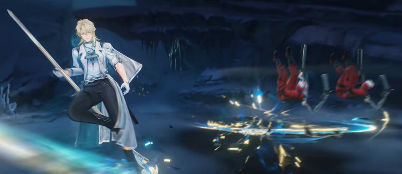 陆赫斯的普通攻击名为“光犹如此”,地面连击共四段,均为衍射伤害。其中第三段会释放一枚无伤害飞刃,该飞刃需配合第四段攻击触发爆炸;若中途切换技能或中断连段,飞刃将自动消失。因此推荐完整打出四段以保障伤害完整性。重击为腾空下砸,消耗耐力并造成衍射伤害。空中普攻共四段,末段为空中下落攻击,同样消耗耐力。值得注意的是,空中第二、三段存在动作分支:短按普攻触发“镰刀·剖解”,短按跳跃则执行“镰刀·裁断”,后者可为目标施加持续25秒的“集谐·偏移”状态。