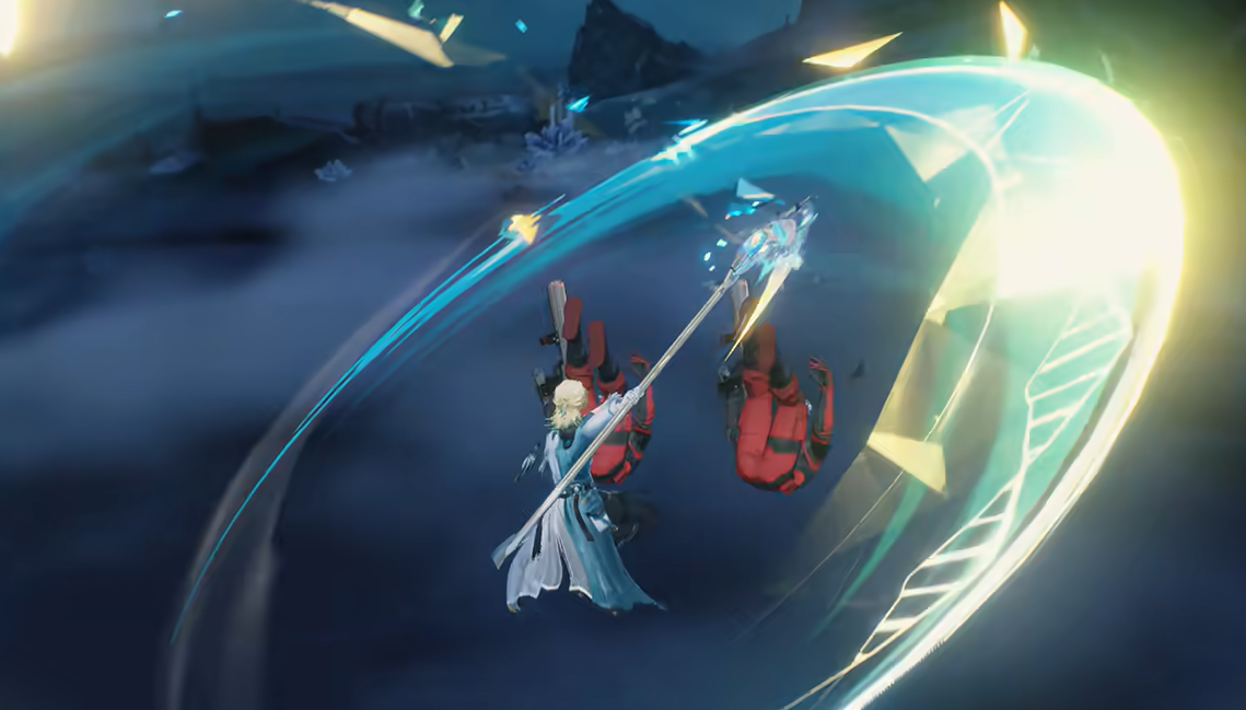 共鸣解放“于永冻中释义”造成衍射伤害,按普攻伤害公式结算,支持空中释放。变奏技能“注入黎明以前”命中时同步生成一枚日髓碎刃。延奏技能“致濒死以答”可造成500%攻击力的衍射伤害。