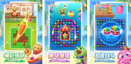 作为国内三消品类的标杆之作,本作以拟人化动物角色构建世界观,整体难度曲线平滑,新手引导清晰,上手门槛低。美术风格明快柔和,动物形象灵动饱满,消除动画细腻流畅,长时间游玩不易产生视觉疲劳。社交系统轻量化设计,支持好友助力与实时榜单竞争,兼顾单人闯关的专注感与多人互动的趣味性。