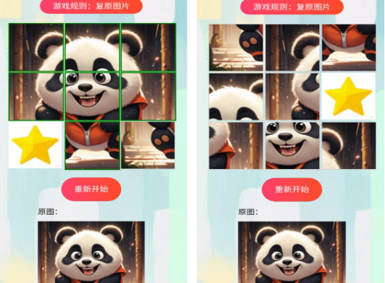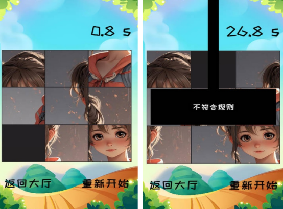 强调限时挑战机制,每关预设倒计时,要求玩家在限定时间内完成图像复原。剩余时间实时显示,通关后生成成绩报告(含用时、步数、准确率三项指标),支持本地存档与好友间数据对比。图库持续更新,含季节系列、城市地标、非遗纹样等专题内容,兼具文化属性与竞技趣味。