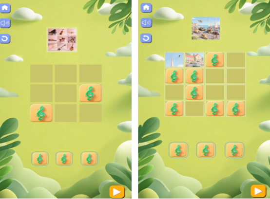 独创“听觉驱动型”拼图模式,每个碎片内置独立音频信号(如鸟鸣、钟声、流水、风铃等),玩家需依据声音特征辨识相邻关系并完成组合。关卡共设30+个层级,初期以单音辨位为主,后期叠加混音、节奏变化与环境音干扰,对听觉分辨力、短期记忆及逻辑推演提出综合要求,是提升专注力与多感官协同能力的有效工具。