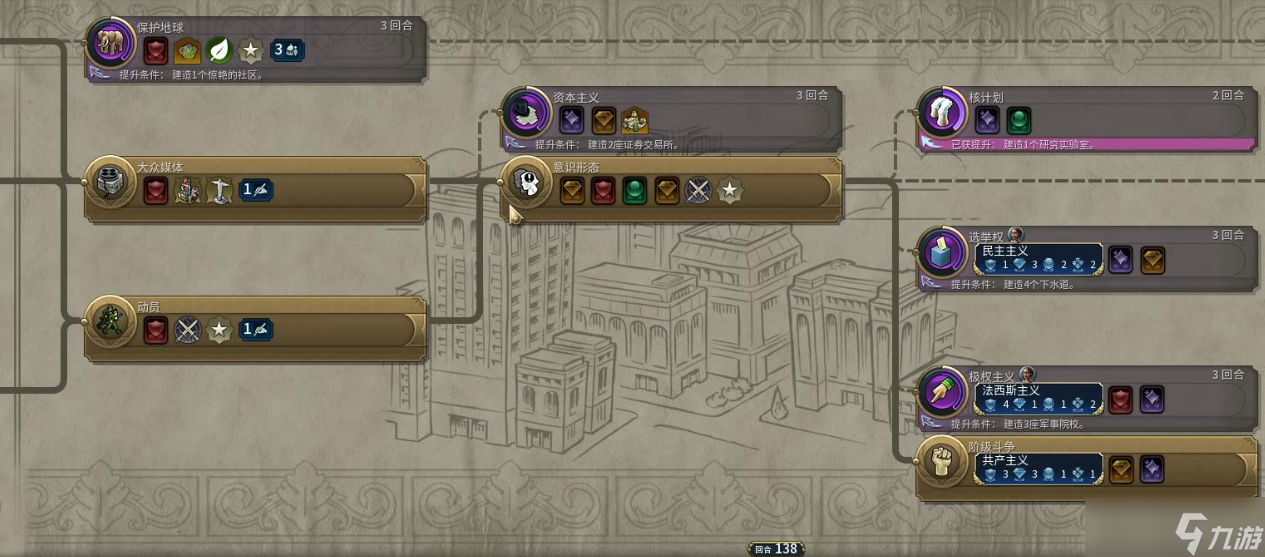 建造好商业中心区域后,你可以在其中建造建筑来进一步提升其效能,基础建筑是市场,建造市场需要先研究银行业科技,并消耗265点基础产能,市场建成后,你可以启动一个特殊项目,将城市的生产力按比例转化为金钱,市场还能提供一条额外的贸易路线,并产出大商人点数和专家金币,你可以继续研究经济学科技,在拥有市场的商业中心里建造更高级的建筑——银行,银行能提供更多的金钱收益。