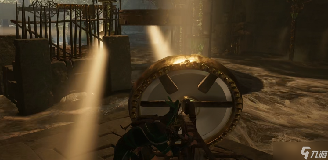 解谜的第一步从入口处的1号镜子开始,首先左转这面镜子,将阳光反射到连接1号与2号镜子平台的左侧柱子上,待柱子竖直后便可攀爬抵达2号镜子所在的平台。到达2号平台后,需要转动这面镜子,将光线反射向通往3号镜子平台的远端柱子,这个步骤因为距离较远可能需要耐心调整以确保瞄准。完成此操作后,必须返回1号镜子处,右转镜面,将阳光射向通往3号镜子平台的另一根柱子,从而建立起通往3号镜子的完整双柱桥梁。攀爬这两根竖起的柱子即可成功到达3号镜子平台。