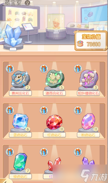 挖掘过程中获得的宝物矿石将收藏在藏宝室内,根据获得宝物矿石累计的宝物价值解锁成就奖励。