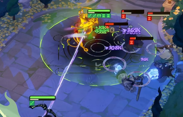 大招名字叫守望之环,包含无敌、范围伤害和晕眩三个效果。这里有个机制要单独说一下,佐尔娅开局会进入休眠状态,这段时间队友是4打5的,等到她从天而降才算正式参战,听起来有点像觉醒斧神的打法。休眠期间她会触发无敌,就算队友全部阵亡,她自己也能靠这个机制把血量和能量回满,然后重新下场。另外,持续给佐尔娅补充能量可以缩短她的休眠时间,这个点在组队搭配上会有一定的发挥空间。