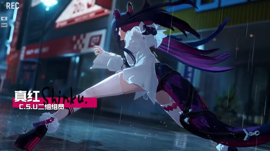 首先来说说真红,她是一个类似高爆发近战输出的角色,拥有极具冲击力的战斗特效,一眼就能看出是个不好惹的狠角色,PV里的他外观帅气,画面当中也是轻松就完成多段突进连击,左手的鬼爪泛着异样的红光,尾部结构既能进行物理打击,还能蓄能,这也说明了这个角色是依靠肢体异化实现输出的,她的异象能力主要是可以带来近身压制以及持续流血的效果,打起来其实还是比较厉害的,特别适合去参与一些快节奏的作战。