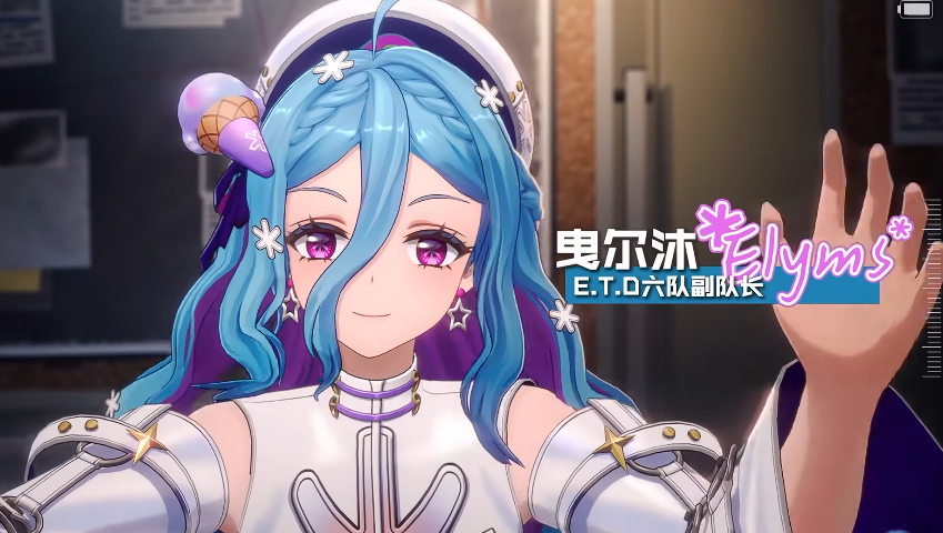 然后是伊洛伊,这个角色外观看起来年龄不大,整体的人物制作也比较符合低龄化的视觉表达,她胸前的十字标记看起来是比较像一个治疗类型的角色,但大家不用以为她是传统的奶妈角色,因为她的定位更特殊,游戏中伊洛伊的名字源自北欧梦境神祇,再加上她头上的恶魔角和脸上的遮眼布设计,能看出她的异能偏向幻境类的效果,所以很多玩家预测她的能力是可以给敌人施加睡眠、混乱或者命中率下降之类的群体减益,既能辅助续航,又能打软控的话她就是后期强度很高的一类多功能支援角色,就是不知道这个角色是否会这样制作。