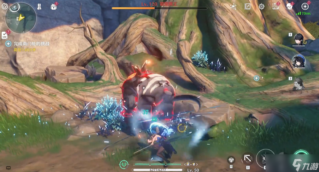 成功引怪并卡住位置后,玩家需要站到旁边的树根上进行输出,注意避免站在石头上,因为石头位置有被攻击的风险。核心打法是在安全的位置,等待箭簇熊释放特殊攻击动作时,使用青羽鹭的声骸技能对其造成大量伤害,攻击后应立即拉开距离,重复这个过程,耐心地将boss磨死,过程中切记不要贪图额外伤害。