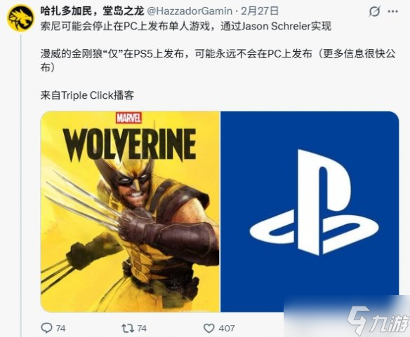 然而,这一发展态势如今充满变数。包括杰兹·科登在内的多位业内人士言论表明,索尼或重新审视PC战略部分内容。以精准泄密任天堂直面会闻名的NateTheHate与资深人士杰森·施赖埃尔认为,索尼可能停止在PlayStation限时独占期结束后将单人游戏带到PC平台。这一想法让期待《漫威金刚狼》登陆PC的玩家不安,也引发对Nixxes工作室的质疑,毕竟索尼曾关闭蓝点工作室。
