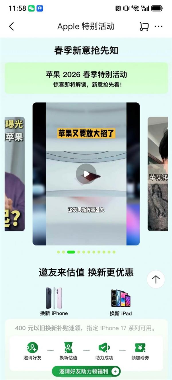 时间:2026-02-28 | 作者: | 阅读:0全球芯片涨价潮持续蔓延,3C数码产品即将迎来全面调价窗口,而苹果定于下周举行的春季新品发布会恰逢这一关键节点。如何在新一轮涨价落地前抢先入手新品,成为许多消费者关注的焦点。为降低用户换新成本,京东率先上线Apple特别活动,推出1000元以旧换新大额券限量抢、邀请好友助力至高再领500元补贴,双重补贴可叠加使用,还有12期免息等多重福利,帮助用户提前锁定换新优惠。截至发稿前,天猫等平台尚未看到类似力度的大额以旧换新补贴上线,京东此举抢占了一波首发红利。即日起,打开京东APP搜索“苹果以旧换新”,即可对旧设备进行估值,提前锁定优惠额度,待新品发售后第一时间入手。