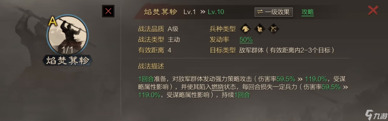 大火战法在游戏中实用性很高,它伤害高且能覆盖最多三个目标,尤其适合谋略属性高的法系武将携带,比如放置在大营位置,能造成群体伤害和燃烧效果,获取后你需要合理分配战法经验进行升级,优先提升等级以增强伤害率和效果持续时间,从而最大化输出能力。使用大火时需注意它与其他火攻类战法可能存在冲突,搭配武将和战法时要避免效果重叠,确保发挥最大效用,大火在征服赛季中仍被广泛使用,因此值得投入资源培养,重点在于耐心积累和规划,避免在抽卡或拆解过程中浪费关键武将。