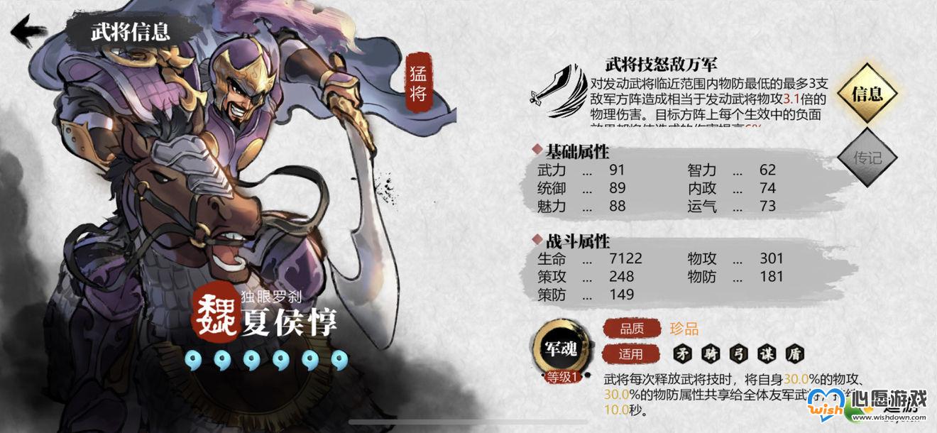 超一流骑兵武将,高额伤害搭配敌人易伤,战法高额属性分享也很受用,时效虽短但触发频率较高。