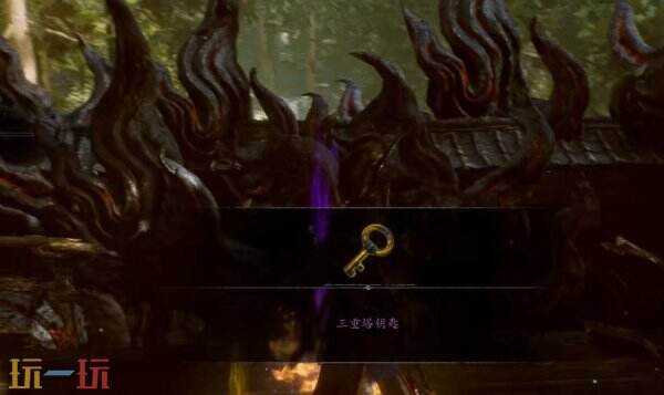 拿到钥匙后,前往附近的三重塔,用钥匙开门进入塔内。一路爬到塔顶,可以找到“废村钥匙”和宝箱。