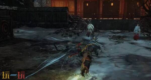 路线:从神社高塔跳到东侧高地→砍碎洞口冰柱进入→温泉旁小宝箱。