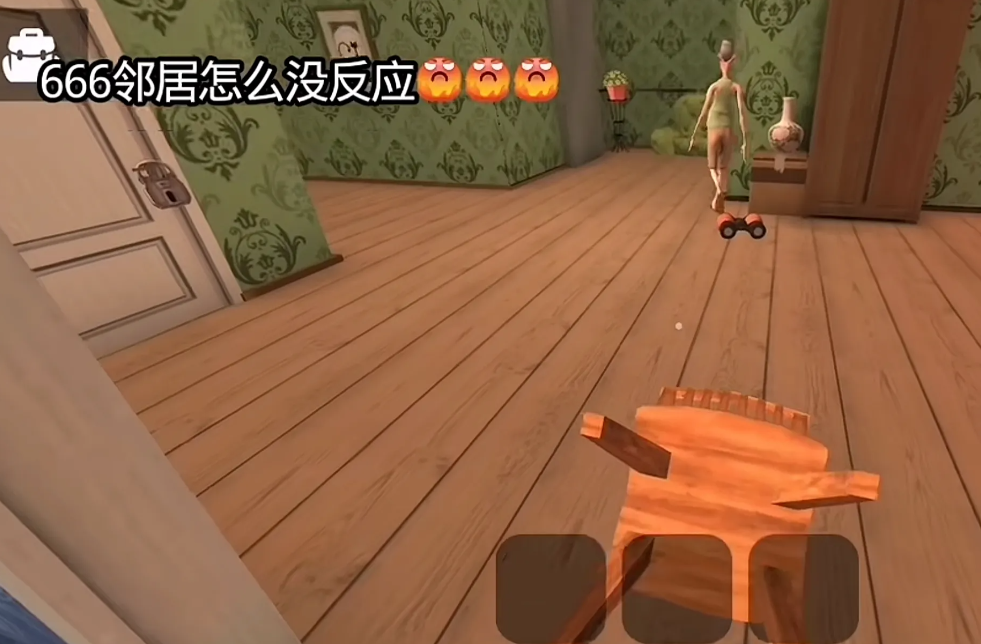 13、令人毛骨悚然的事情出现了,我们的邻居发现了我们,然后就来抓我们了,只是他这姿势和表情实在让人觉得有些恐惧,再加上游戏中会出现恐怖的音效,小编看到邻居走过来的时候瞬间鸡皮疙瘩都起来了。