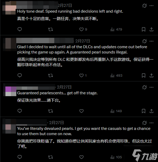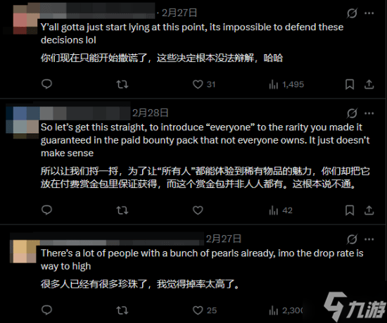 然而,这一解释并没有平息玩家的不满。大量回复中,玩家纷纷表达了失望情绪。有玩家直言:“‘必定掉落’和‘珠光’这两个词根本就不该出现在同一句话里。”类似的声音在评论区占据了主流。