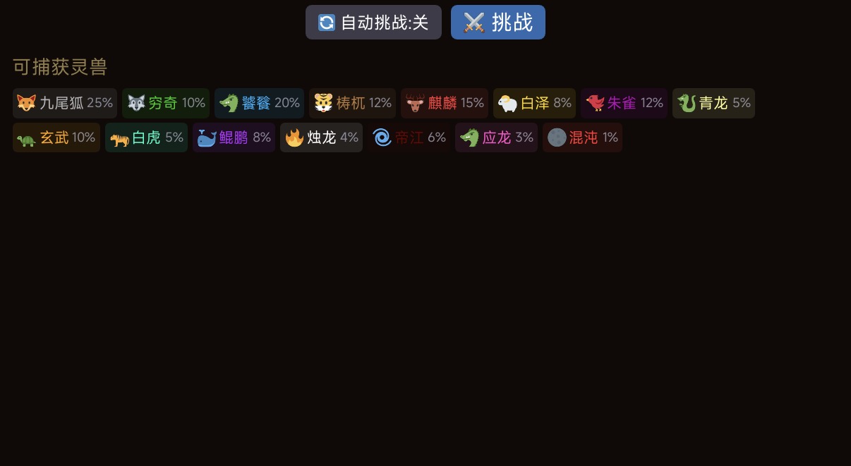 在升级的道路上还有机会随机捕获各类灵宠,有了灵宠之后不仅能提升角色的战斗能力,更是在作战页面多了一个并肩作战的伙伴。后续还能对灵宠进行升级养成。