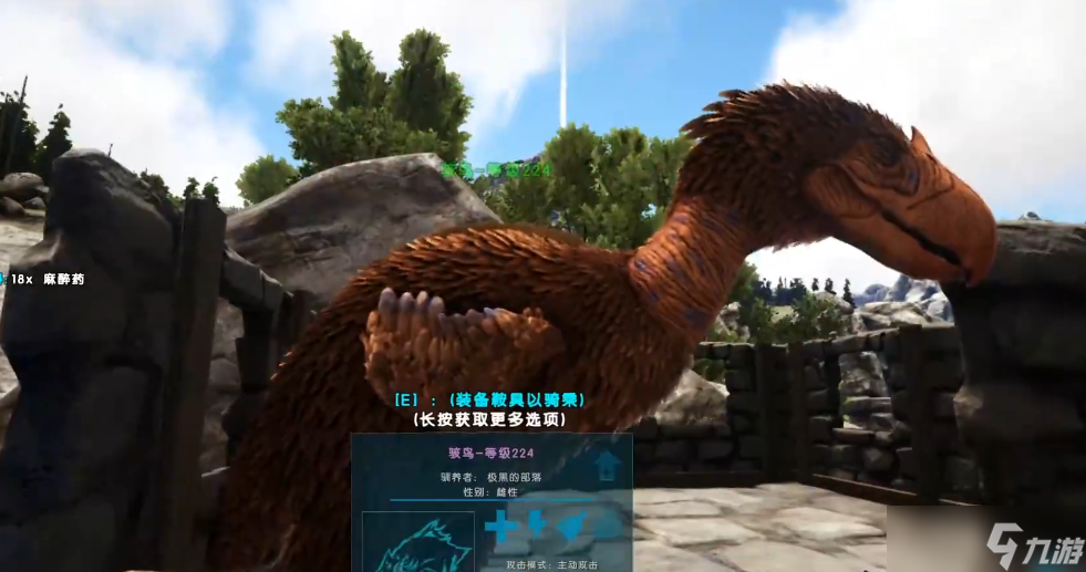 对于多数具有攻击性或机动性强的鸟类,标准的驯服方法是击晕驯服。寻找目标后,可利用地形或建筑建造简易困龙房将其引入控制,或在其冲向你时使用流星锤定住。定住目标后,使用麻醉箭、麻醉镖等武器将其击晕,射击过程中必须小心控制伤害,避免因伤害过高而误杀。击晕后,打开其物品栏放入准备好的优先食物,如优质生肉、特定饲料或浆果,开始驯服进程。