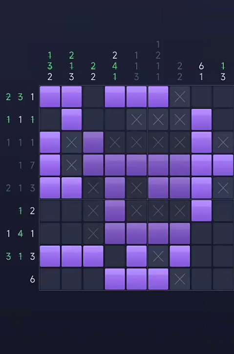 每个数字,所象征的就是在这一列里面,可连续涂色的长度以及格数,所以只要按照相关的逻辑进行推算的话,那就能一步步解开每一个关卡了。不仅能锻炼脑子,心中也有成就感!