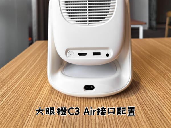 大眼橙C3 Air的外观真的很戳我,整体是简约的白色机身,看起来干净又百搭,放在家里任何地方都不会显得突兀。它的体积小巧,重量也很轻,只有1.28kg,单手就能轻松拿起,不管是放在卧室的床头,还是带到客厅使用,都非常方便。