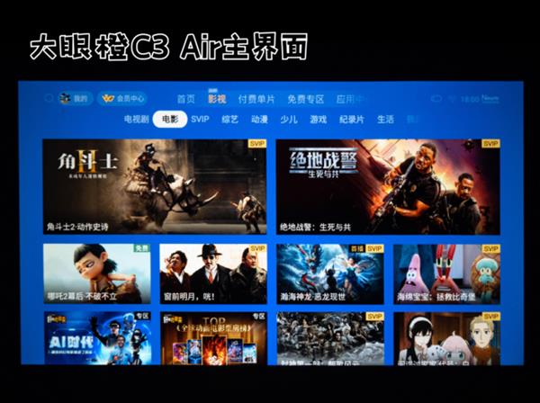 大眼橙C3 Air搭载的是腾讯极光TV系统,影视资源非常丰富,各种热门电影、电视剧、综艺、动漫等应有尽有,基本上能满足不同人群的观看需求。系统操作也比较简单易懂,界面简洁明了,老人和小孩也能轻松上手。