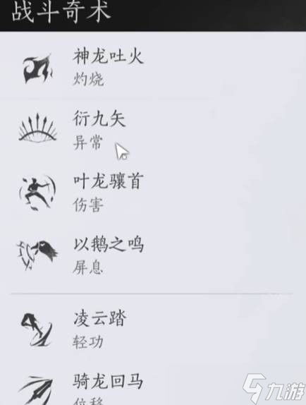 奇术带上衍九矢和凌云踏,以鹅之鸣、叶龙骧首、骑龙回马选带。