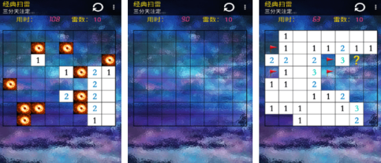 经久不衰的这款扫雷游戏更注重的就是大家的思维能力,其实从玩法方面来看,特别简单又独特,每个关卡开始之后都会呈现出很多空白的方块,大家通过合理规划的方式就可以精确点击,只要翻开带有数字的方块就可轻松获胜,但是在翻动卡片的过程中,千万不要触碰到雷区。