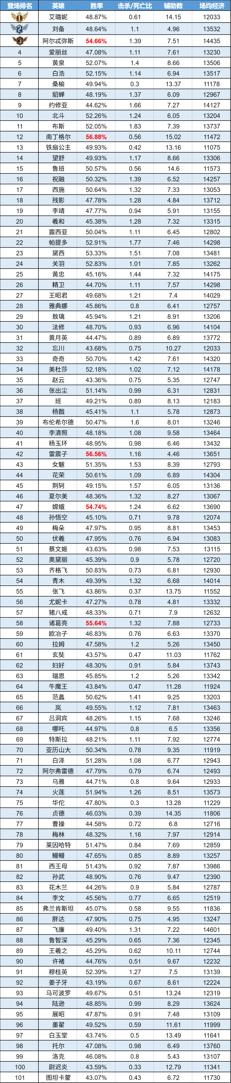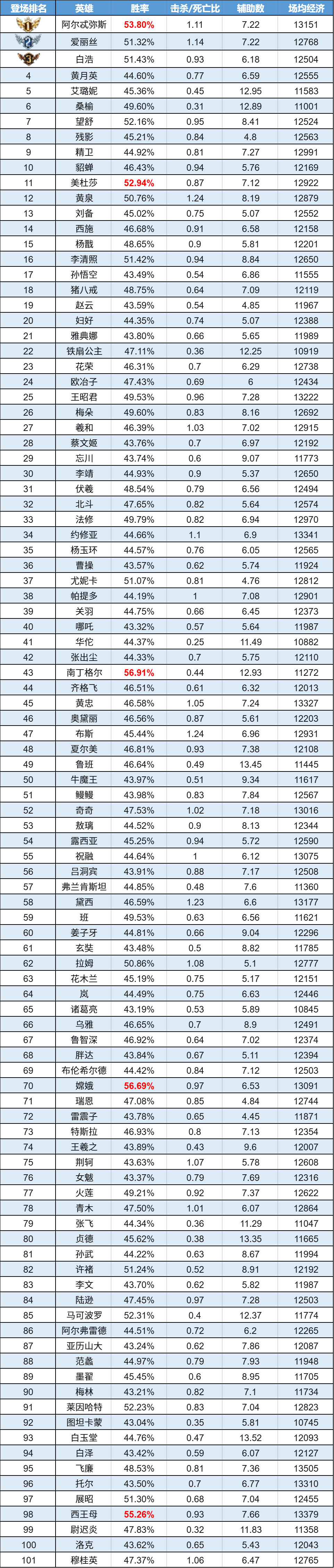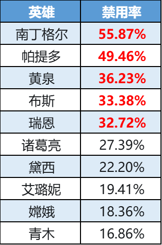 【禁用率】南丁格尔创新高,诸葛亮排名上升。