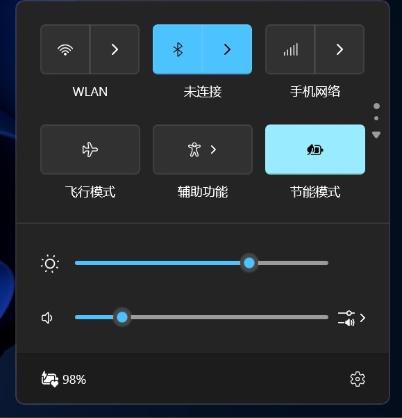 此外,还可在windows左下角的功能栏中开启节能模式,进一步降低功耗。