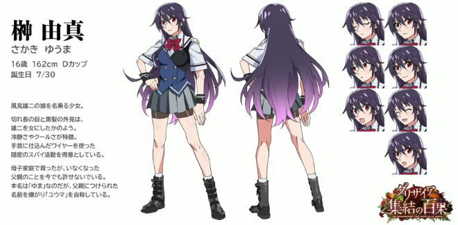游戏中设计的六位女儿角色各有自己的特点,有擅长谍报的榊由真、活泼开朗且擅长驾驶的优羽姬、天真烂漫,擅长流程规划的一瑠、精通枪械有着毒舌性格的星莉菜等等,给一路的剧情带来丰富看点。
