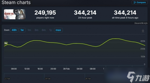 据SteamDB统计数据显示,这款游戏在Valve平台上的最高同时在线玩家人数已突破34.4万。凭借这一成绩,《生化危机9:安魂曲》成功超越《怪物猎人:世界》,跃居卡普空游戏历史热度榜单第二位。不过,榜单首位的《怪物猎人:荒野》仍保持明显优势,其创下的138万人同时在线纪录目前依旧难以撼动。从当前数据来看,《生化危机9:安魂曲》的商业表现已无悬念。