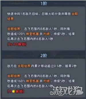 炽焰舞姬核心的战斗力主要是靠两个技能支撑,第1个阶段就可以打出不俗的效果,在提升等级之后,还能拥有翻倍的强度。一技能是核心的输出技能,在针对单个目标时,丢出扇子就可以造成200%的神圣伤害。扇子在掉落在地时,还能灼烧三个敌人,然后打出200%的神圣伤害,同时可以给随机一名敌人挂叠扇标记。这一个标记就堪称小怪克星,目标准备攻击时就会直接被魅惑1.5秒。而且禁疗还可以让敌人的治疗因此而失效,灼烧就可以直接定住小怪0.5秒,唯一遗憾的是这个技能对Boss没有效果。