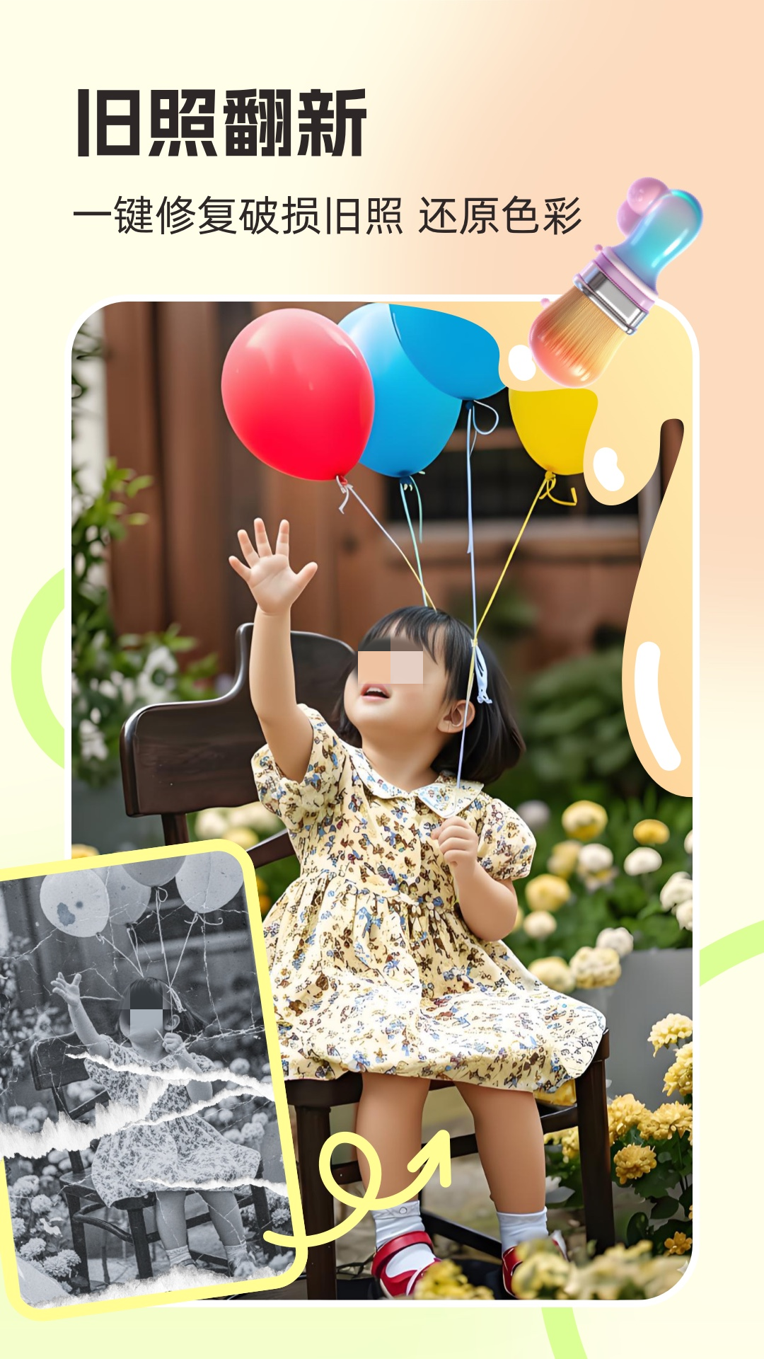 融合AI画质增强与智能色彩重建技术,可针对低分辨率、泛黄、偏色等常见老化问题实现一键优化。其特色功能包括自动上色还原真实肤色与环境色调,并支持生成AI动态照片——通过微动作模拟赋予静态人像生动感;配合高精度边缘识别抠图,确保修复后的人物轮廓自然、细节饱满。