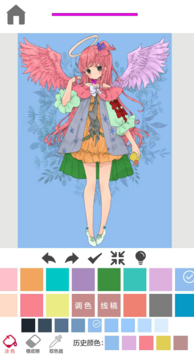 主打二次元风格与萌系视觉语言,角色造型圆润可爱,题材覆盖萌宠、甜点、幻想生物等年轻用户偏爱方向。内置智能填色引擎,支持两种着色模式:手动点击区域快速填充,或依据轮廓线自动识别并完成整块上色,显著降低色彩搭配门槛。同时保留自由调色盘与透明度调节功能,兼顾趣味性与基础创作延展空间。
