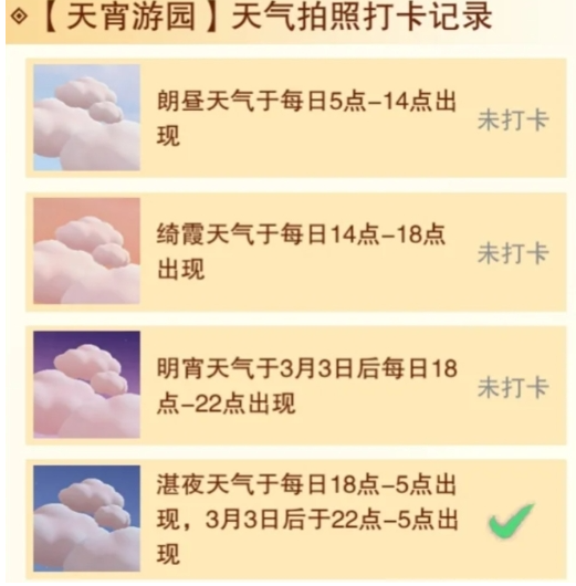 获取方法:累计拍照打卡成功三个天气即可获得