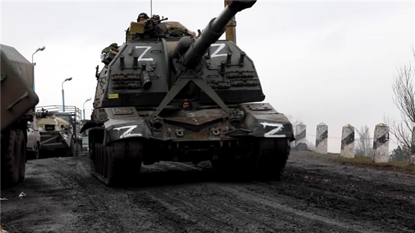 于是不但堑壕拉锯的战争形态一下回到了一百多年前,连视觉识别标志也回归了:乌克兰士兵用蓝色和黄色的电工胶带缠在身上,俄罗斯载具上则用白漆画上大大的 Z 字。
