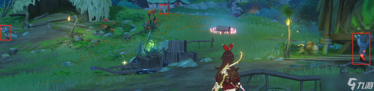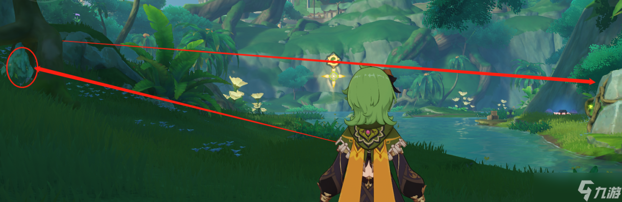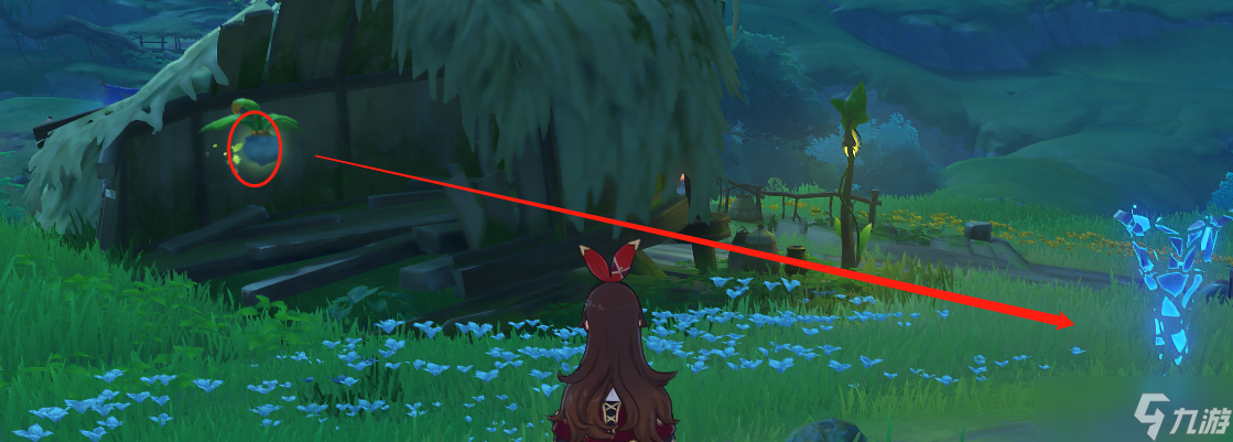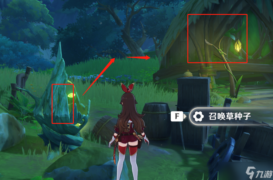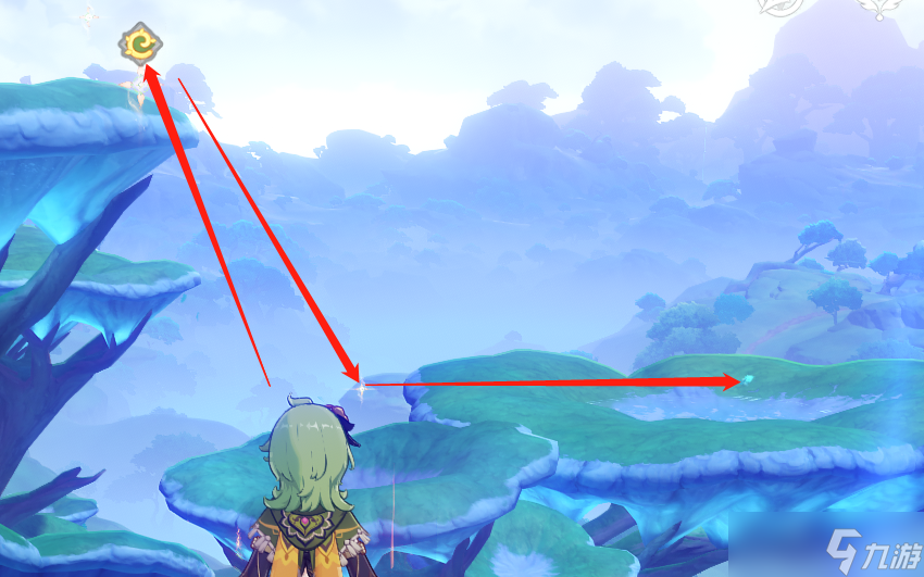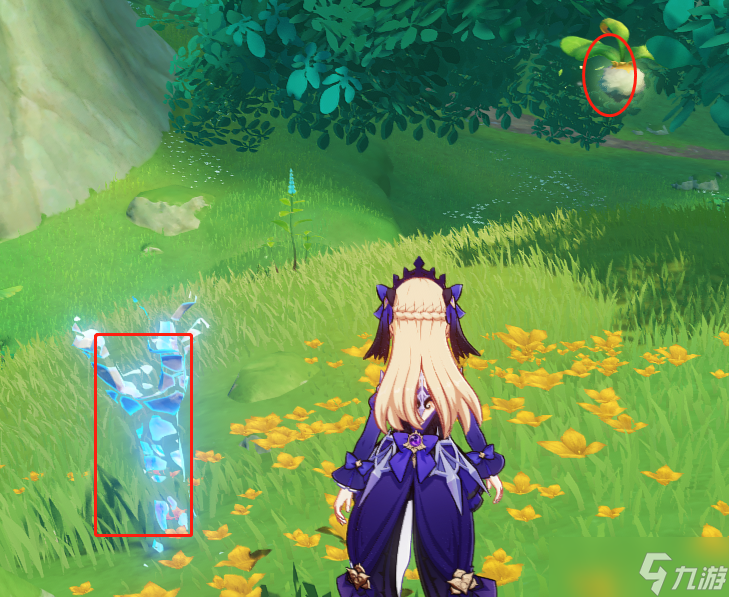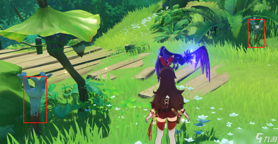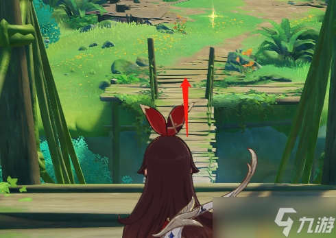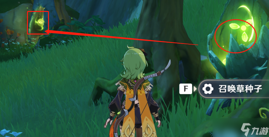 在这颗歪身子树上有一个仙灵,我们踩四叶印过去送仙灵回家