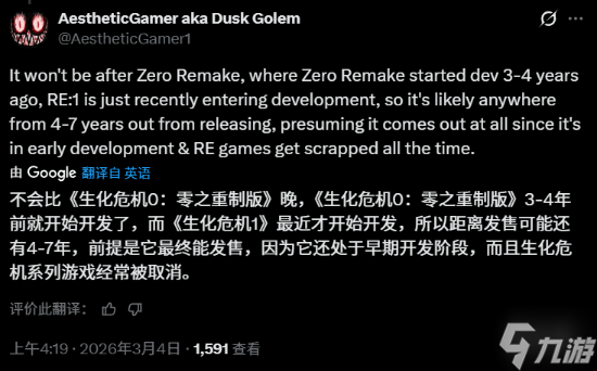 此外,Dusk Golem还梳理了未来几部《生化危机》作品的传闻计划: