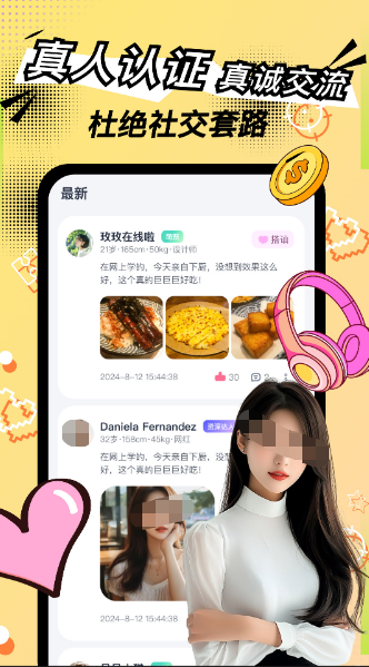 主打同城社交的手机交友应用,可以基于LBS定位准确匹配同城用户,可以设定兴趣、年龄等条件筛选交友对象。用户可以在app上发布图文、短视频动态,支持文字和语音、视频通话,应用有实名认证和内容审核机制。