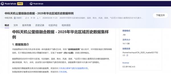 时间:2026-03-04 | 作者: | 阅读:0近日,中科天机 “公里级融合数据 ——2025 年华北区域历史数据集” 正式登陆和鲸社区,这是其继魔搭社区后,在数据生态布局上的又一关键落子,不仅实现了高精度气象数据向更多元科研场景的渗透,更标志着中科天机与和鲸社区在 AI for Science(AI4S)领域的协同创新迈入全新阶段,为气象科学与人工智能的深度融合搭建起高效的资源共享与技术协作桥梁。