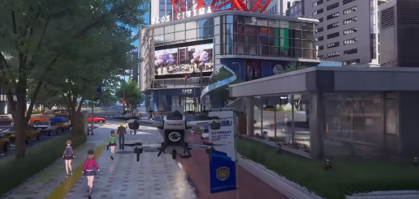 新城区是新手阶段活跃度最高的区域。整体呈现鲜明的近未来都市风貌:高密度玻璃幕墙建筑、动态霓虹广告牌与悬浮交通标识交织,街道宽阔、视野通透,为PVP及大型战斗提供了良好的地形基础,极少出现遮挡或穿模问题。