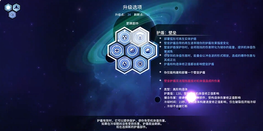 游戏核心围绕飞船三大可更换系统展开:机体、武器与护盾。三者独立装配,支持中局切换以应对不同战况。其中模块系统构成深度策略中枢——全量模块超150种,组合后可激活多重协同效果;每次升级将随机重置模块池,玩家可消耗刷新点重新抽取,直至获得理想搭配。