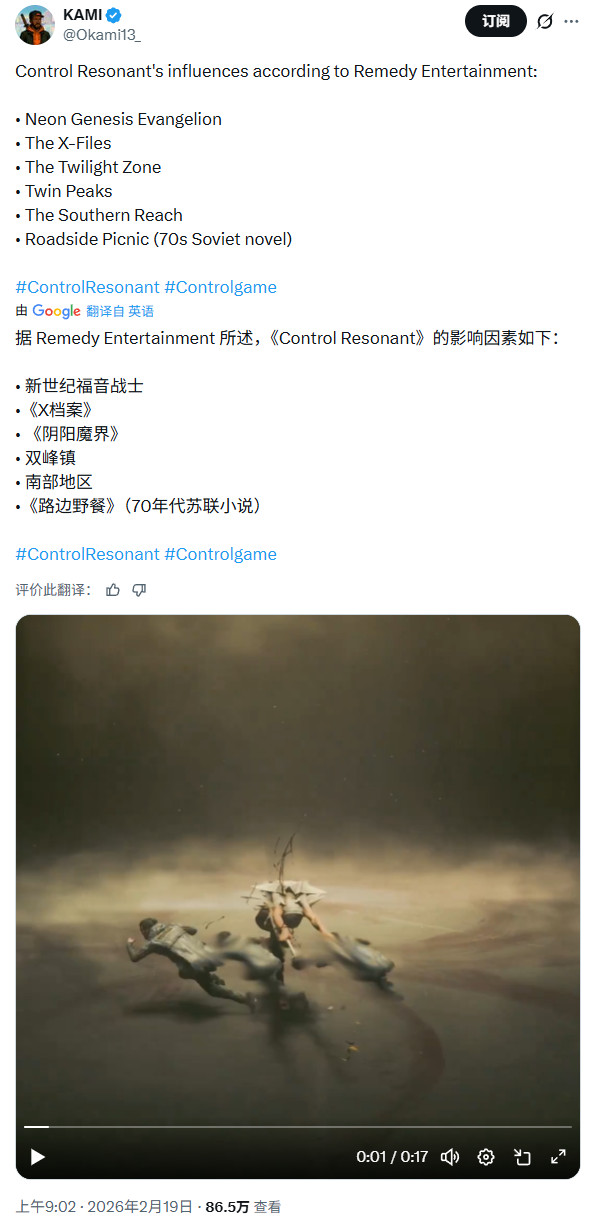 Remedy还透漏《控制:共振》受到了以下这些作品的启发: