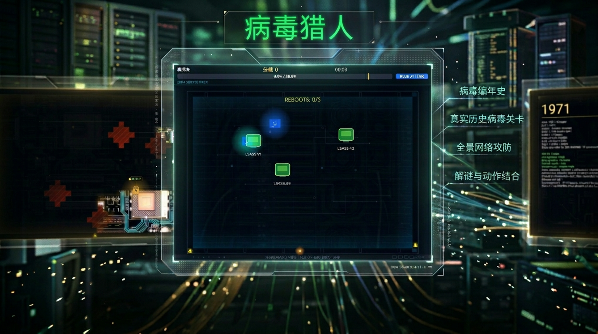 从1971年第一个计算机病毒到2027年AI自主威胁——用57关领地围捕战,玩透半个世纪的网络安全史。【玩法】在复古硬件风格的网格地图上划线圈地,封锁病毒活动区域。蓝线筑起标准防火墙,红线发动深度捕获双倍得分。每一关对应一种真实存在的计算机病毒,拥有独特的AI行为和Boss机制。【四大时代·57种真实病毒】- 启蒙期(1971-1986):Creeper、Brain等16种早期病毒,见证计算机安全的萌芽- 泛滥期(1987-2003):Morris蠕虫、ILOVEYOU等17种经典威胁,体验互联网病毒大爆发- 进化期(2004-2016):Stuxnet、Mirai等13种高级武器,感受国家级网络战- 全面战争(2017-2027):WannaCry、AI注入攻击等11种现代威胁,直面未来挑战【50+独特Boss机制】没有两个病毒的玩法相同:TROJAN伪装问答、蠕虫节点传播、勒索加密倒计时、控制劫持反转操作、Fork炸弹指数分裂……每一关都是全新的策略考验。【丰富收集要素】- 171颗星星等你挑战(每关1-3星评价)- 9款可解锁皮肤(复古绿屏、赛博粉、猎人金、幽灵紫……)- 2个隐藏关卡等待发现- 每种病毒配有真实历史科普,中英双语【操作简单·策略深邃】方向键/WASD移动,Tab切换蓝红线模式。上手只需10秒,但要三星通关57个年份,你需要真正的策略眼光。