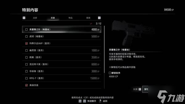 格蕾丝微冲可以先不买,确实比较贵,而且可以无限子弹玩里昂的安魂打疗养院。虎彻刀也是先别买别买,挺拉的,反击就插怪身上了,还得把它打死。